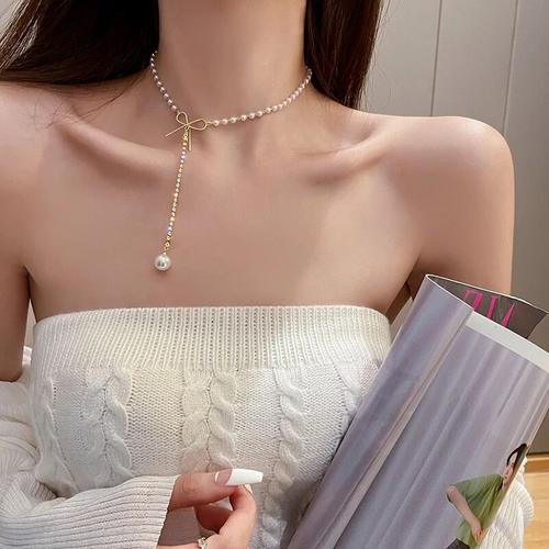 - 晚礼服:出席晚宴或重要活动时,华丽的礼服需要与之相匹配的锁骨链来提升整体造型的华丽感,如果是抹胸礼服,可以选择一条钻石群镶的长款锁骨链或者大颗珍珠串成的锁骨链,让项链在胸前形成一道亮丽的风景线,若是露肩礼服,则可以将锁骨链的重点放在锁骨处,选择一条造型独特的吊坠锁骨链来吸引目光。