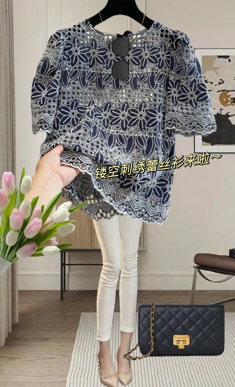 上衣与裤子的搭配也能因刺绣蕾丝花边而别具一格,一件淡蓝色的衬衫,领口与袖口点缀着白色刺绣蕾丝花边,简约中透露出精致感,搭配一条高腰直筒牛仔裤和一双白色高跟鞋,既展现出干练利落的职业形象,又不失女性的柔美与优雅,对于休闲场合,一件宽松的针织开衫,衣角处用彩色刺绣蕾丝花边勾勒出独特的形状,内搭简约的 T 恤与短裙,营造出一种慵懒而时尚的氛围,无论是逛街还是与朋友聚会,都能轻松驾驭。
